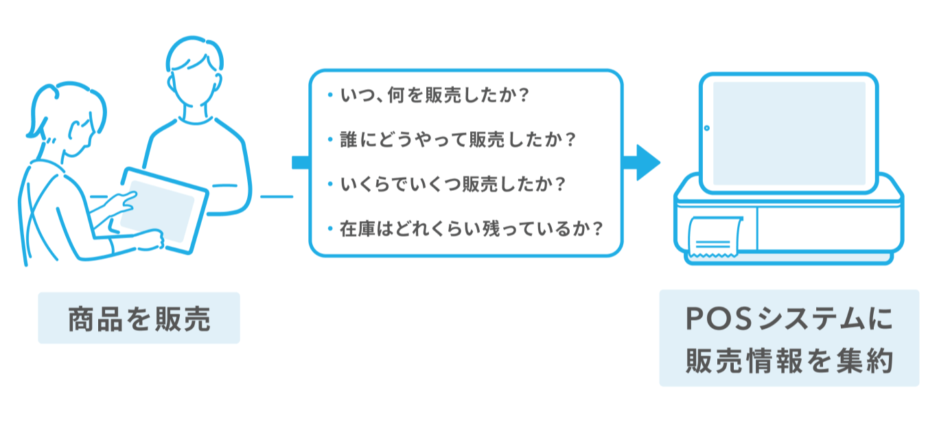 - POSとは、売上や在庫、顧客情報などを記録し、一括で管理・集計・分析できるシステムのこと
