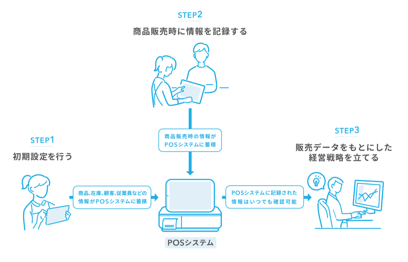 POSシステムの利用手順を踏まえて、仕組みを解説します。