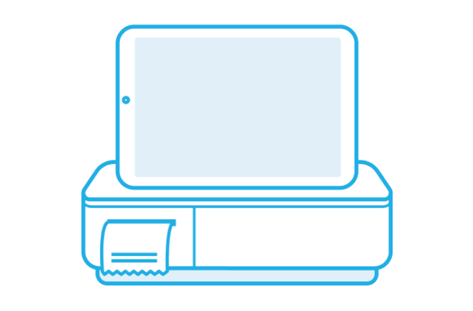 スーパーやコンビニでよく見かける、従来のレジスターにPOSシステムを搭載したタイプで、専用に作られているため利用の仕方に応じてカスタマイズが可能です。常設型のため盗難リスクが低い点も魅力です。一方で、初期費用や維持コストが高くなりがちです。