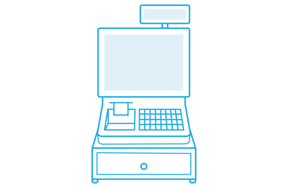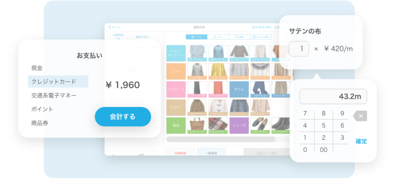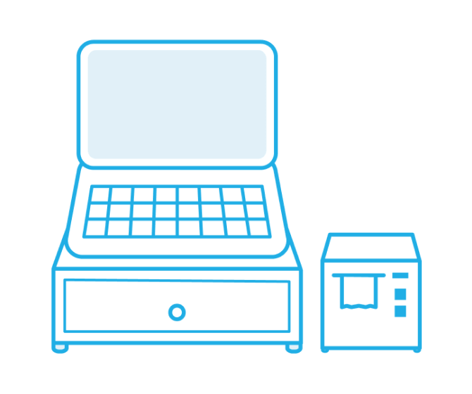 POSシステムの基本の機能。販売金額の計算や代金決済、レシート発行などができます。