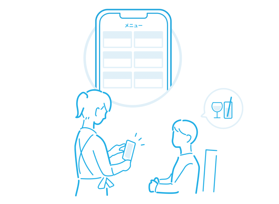 また、飲食店では、テーブルにタブレットを置いてお客さまが直接注文できる仕組みも可能です。 注文情報はそのまま厨房に届くので、人手不足の解消やオーダーミスを防ぐことができます。