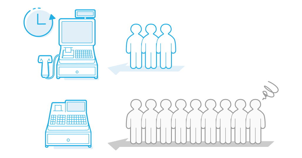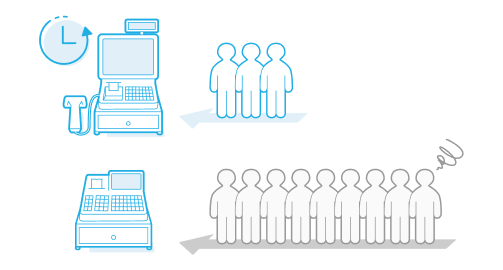 POSシステムを搭載したPOSレジでは、事前に登録された商品情報をもとにバーコードリーダーなどで購入する商品を入力することが可能です。都度金額を手打ちする必要があった従来のレジと比較して、効率的に会計を行うことができます。また、会計待ちの混雑が緩和されることで、お客さまの利便性や満足度の向上も期待できます。
