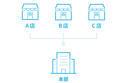 各店舗の売上や、在庫量などの情報を一元管理できます。これにより、本社(本部)などでは各店舗の報告を待たずにリアルタイムで店舗の情報を把握できます。