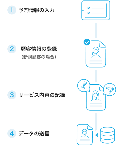 施術の詳細や使用した商品、次回への申送り事項などをレジに記録する。 -