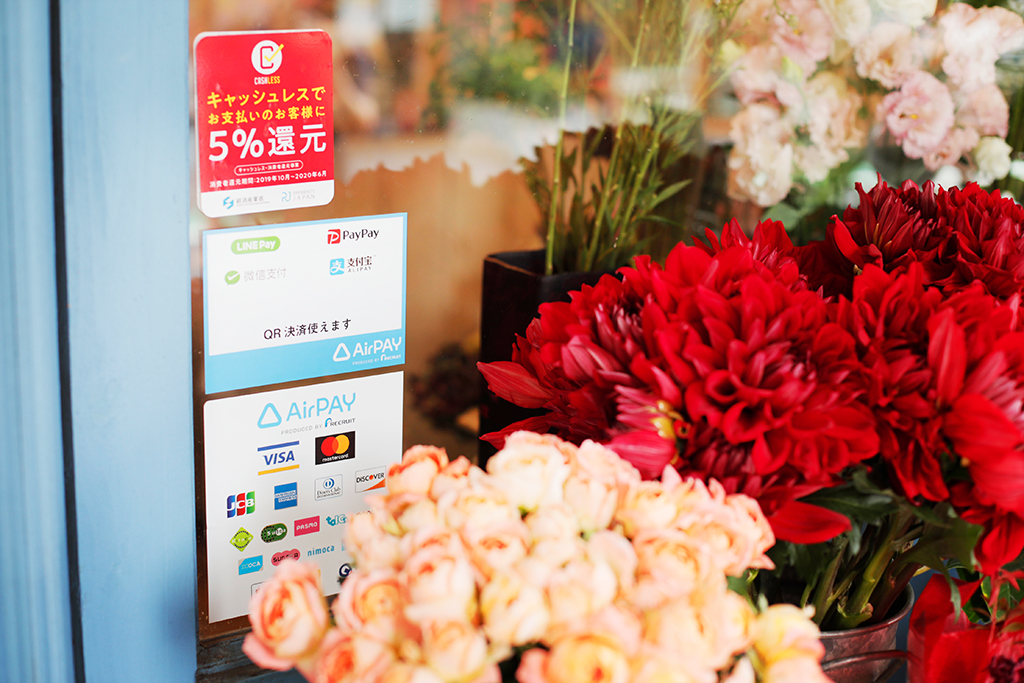 店頭のディスプレイは主役の花を美しく見せる場所なのでそれほど大きくアピールしているわけではないのですが、「Airペイ」が対応している決済手段のシールを貼ってから、すぐに効果があらわれました。今のところ、使われるのはほとんどがクレジットカードです。当店の平均客単価は2千数百円。でもカードを使う方の客単価はもっと高いことが特徴です。カードの利用率自体はまだ全体の1割ですが、数万円の買い物をされる方がいるために、全体の売上として2割程度はアップしています。もしカードが使えなければ金額の高いお買い物をされる方は、当店以外に行っていたと考えると大きな変化ですよね。まだ導入してから2カ月しか経っていないので、それほどお客様には認知されていない状態だと思います。これからもっとキャッシュレス決済に対応できることをアピールして、ご来店いただいたお客様を、確実に当店のお客様にしていきたいと思っています。