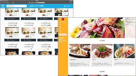 - お店のホームページをテンプレートを選択するだけでカンタンに作成できます。